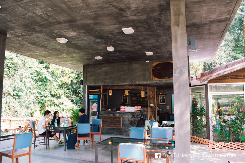 ออกมาหลังศูนย์บริการนักท่องเที่ยวก็จะมีร้านกาแฟเล็กๆ ตั้งอยู่ค่ะ ถัดไปข้างๆ ก็จะมีกระสานเชือกข้ามแม่น้ำ ที่เป็นจุดเริ่มต้นของเส้นทางศึกษาธรรมชาติ โดยเราสามารถเดินเข้าไปชมเองได้ค่ะ