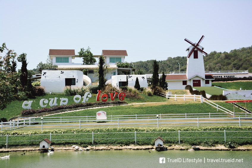 a Cup of Love เป็นร้านกาแฟที่มีธีมสีแดงขาว มีคำว่า Love ตัวใหญ่มากค่า (ฮ่า) มีมุมสวยๆ ให้เดินถ่ายรูปเล่นเพลินๆ ข้ามสะพานเชือกถัดมาเป็นฟาร์มแกะค่ะ ซึ่งแน่นอนว่า เราสามารถซื้ออาหาร และให้หญ้ากับน้องแกะได้ และยังสามารถถ่ายรูปกับน้องแกะได้อย่างใกล้ชิดอีกด้วยนะ น่ารักมาก <3