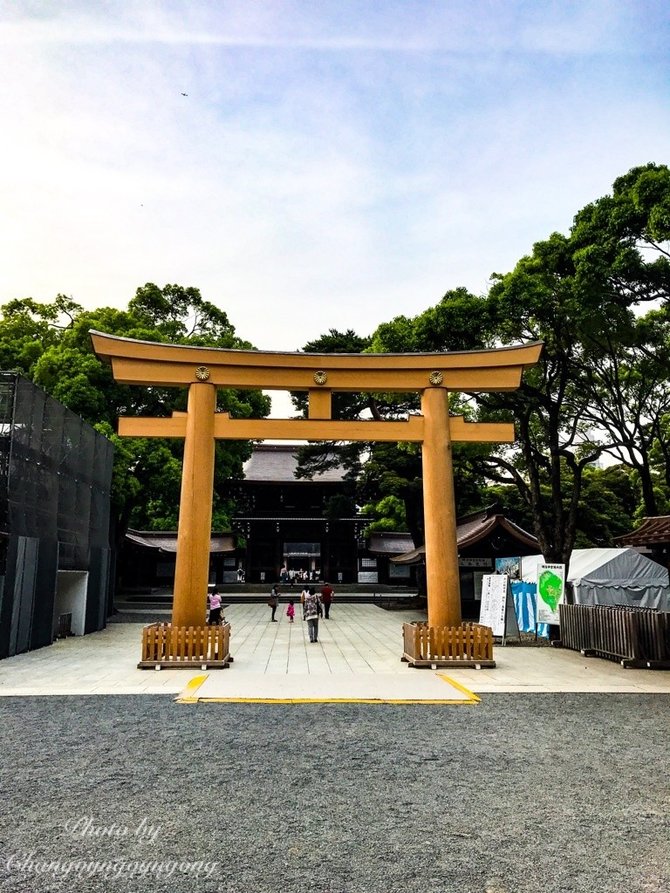 ศาลเจ้าเมจิแห่งนี้ถูกสร้างขึ้นในปีคศ.1920 เพื่อเป็นการรำลึกถึงสมเด็จพระจักรพรรดิเมจิครับ และด้วยความร่วมมือของประชาชนที่บริจาคต้นไม้กว่า 100,000 ต้น ทำให้ศาลเจ้าแห่งนี้ร่มรื่นเป็นอย่างยิ่ง และด้วยขนาดที่ใหญ่ ทำให้ระยะทางในการเดินเข้าไปจนถึงตัวศาลเจ้าไม่น้อยเลยทีเดียว เรียกได้ว่าใช้ระยะทางเพื่อพิสูจน์ความรักเลยก็ว่าได้นะครับ