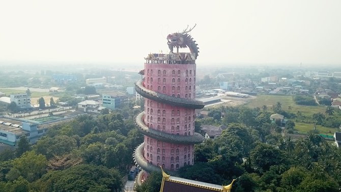 เริ่มต้นทริปกันที่อ.สามพราน กับ “วัดสามพราน” ที่มีความโดดเด่นของตึกสีแดงที่มีมังกรกำลังตะกายฟ้า พันรอบ ๆ ตัวตึกที่เห็นคือกุฎิค่ะ ไม่สามารถเข้าด้านในได้ จะเปิดให้เข้าเฉพาะวันสำคัญทางศาสนาเท่านั้นค่ะ ตัวตึกของกุฏิมีความสูงพอสมควร ทำให้ผู้คนที่ผ่านไปมาในละแวกนี้ สามารถมองเห็นได้แต่ไกล แถมเข้ามาชมใกล้ๆ ดูอลังการมาก ๆ เลยค่ะ ผ่านมาแล้วก็อย่าลืมเข้ามากราบไหว้สักการะกันสักหน่อยนะคะ